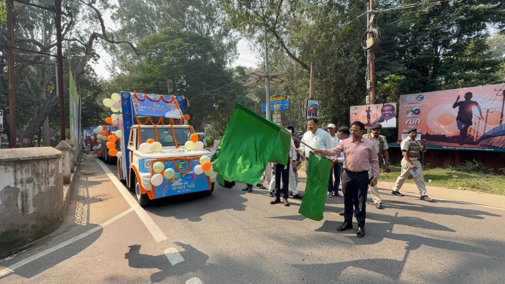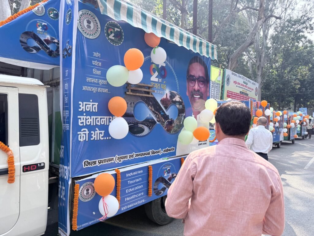 झारखंड राज्य के स्थापना दिवस (रजत वर्ष) की पूर्व संध्या पर आज समाहरणालय परिसर, साहिबगंज से जिला प्रशासन द्वारा जन-जागरूकता और सरकारी योजनाओं के प्रचार-प्रसार हेतु तैयार किए गए प्रचार वाहनों को हरी झंडी दिखाकर रवाना किया गया।