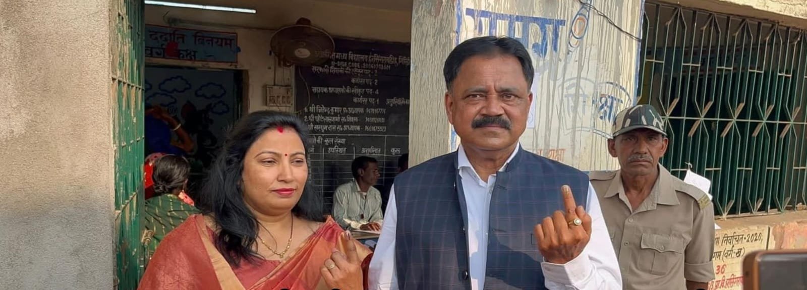 गिरिडीह जिले में नगर निगम चुनाव के दौरान झारखंड सरकार के नगर विकास मंत्री सुदिव्य कुमार सोनू ने अपनी पत्नी के साथ वार्ड नंबर 36 के बूथ नंबर 3 पर मतदान किया।