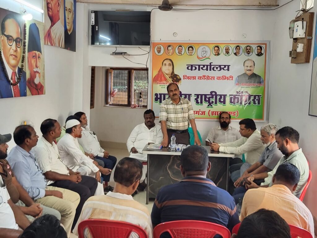 जिला कांग्रेस कार्यालय साहेबगंज में आज जिला कांग्रेस कमिटी की एक महत्वपूर्ण बैठक जिला अध्यक्ष बरकतुल्लाह खान की अध्यक्षता में संपन्न हुई। बैठक का मुख्य उद्देश्य संगठन सृजन अभियान 2025 के तहत जिले में चल रहे कार्यक्रमों की समीक्षा करना और आगामी जिला अध्यक्ष के चुनाव को लेकर रणनीति बनाना रहा।