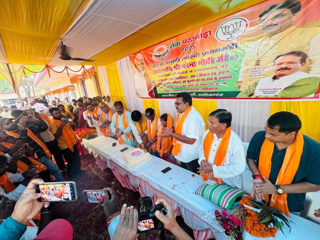 प्रधानमंत्री श्री नरेंद्र मोदी के 75वें जन्मदिन के अवसर पर शुक्रवार को भाजपा के राष्ट्रीय मंत्री (किसान मोर्चा) बजरंगी प्रसाद यादव के नेतृत्व में साहिबगंज जिले के जोंकमारी, महादेवगंज में भव्य कार्यक्रम का आयोजन किया गया। कार्यक्रम की शुरुआत आदिम जनजाति के वरिष्ठ सदस्य सूर्या पहाड़िया एवं उनकी पत्नी से केक कटवाकर की गई। इस पहल ने कार्यक्रम को विशेष और भावनात्मक बना दिया, जिससे जनजातीय समाज में हर्षोल्लास का वातावरण देखा गया।