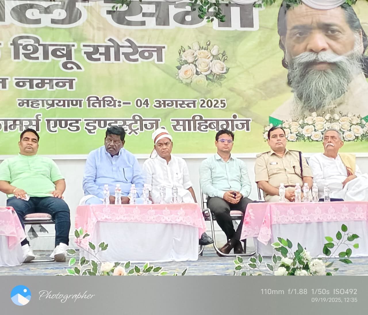 ईस्टर्न झारखंड चैंबर ऑफ कॉमर्स के तत्वाधान में दीनदयाल उपाध्याय नगर भवन, साहिबगंज में शुक्रवार को स्वर्गीय शिबू सोरेन के सम्मान में श्रद्धांजलि सभा का आयोजन किया गया। इस अवसर पर जिले के सभी राजनीतिक दलों, सामाजिक संगठनों एवं प्रशासनिक अधिकारियों ने बड़ी संख्या में भाग लेकर उन्हें नमन किया।