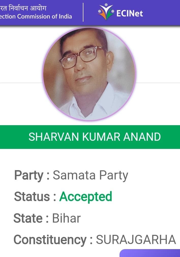 समता पार्टी ने बिहार में कुल 25 उम्मीदवार उतारे समता पार्टी के कुल 25 उम्मीदवार चुनावी मैदान में हैँ राष्ट्रीय अध्यक्ष उदय मंडल ने बताया कि बिहार विधानसभा चुनाव में समता पार्टी से कुल 25 उम्मीदवार नें अपना नामांकन किया है वही समता पार्टी के राष्ट्रीय अध्यक्ष उदय मंडल ने कहा कि बिहार में कम से कम 10 विधायक चुनाव जीतेंगे वही आगे कहा कि समता पार्टी के बिना सहयोग से सरकार बनना मुश्किल है साथ ही साथ कहा की इस बार के बिहार विधानसभा चुनाव में किसी को भी बहुमत मिलना मुश्किल है क्योंकि यूपीए और एनडीए गठबंधन में टिकट बंटवारे को लेकर काफी खींचातानी हुई है कहीं कहीं तो दोस्ताना संघर्ष भी हो रहा है वही वही समता पार्टी के पार्लियामेंट्री बोर्ड के राष्ट्रीय अध्यक्ष मो नूरहसन ने कहा कि समता पार्टी अगर बिहार में 10 सीट जीतती है तो समता पार्टी के बिना बिहार में सरकार बनना मुश्किल है समता पार्टी बिहार में बिना एलायंस के चुनावी मैदान में है यूपीए और एनडीए दोनों ही एक सिक्के के दो पहलू हैं दोनों ही पार्टी क़े गठबंधन से एलाइंस करने का ऑफर मिला परंतु समता पार्टी ने किसी से एलाइंस नहीं किया क्योंकि समता पार्टी का उद्देश्य बिहार में विकास करना और बिहार में समता मूलक समाज की स्थापना करना, बेरोजगारों को रोजगार और बिहार को भारत के नक्शे पर आगे लाना ही मकसद है समता पार्टी अगर 10 सीट बिहार में लाती है तो पार्टी अपने एजेंडा के साथ किसी भी दलिया गठबंधन को समर्थन करेगी अन्यथा नहीं