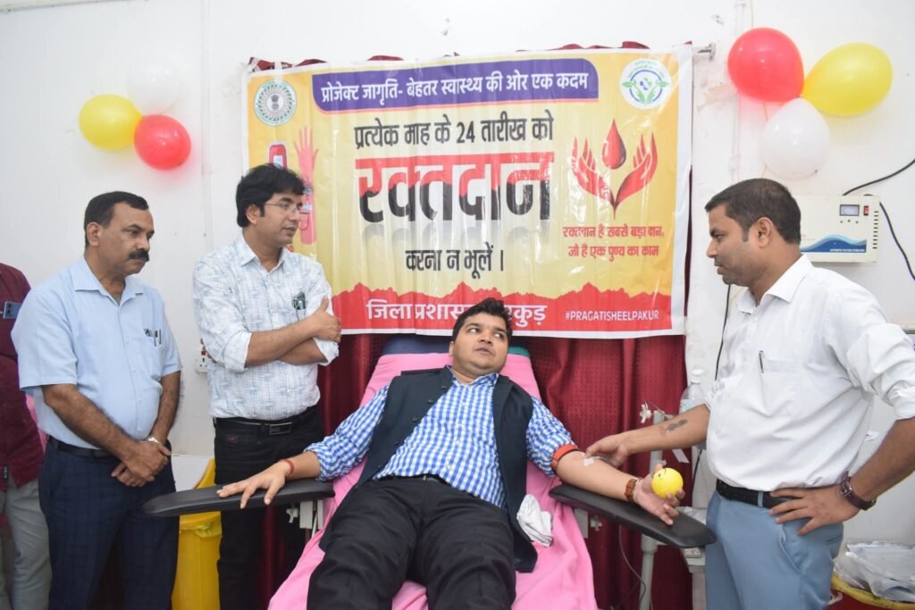 प्रोजेक्ट जागृति के तहत आज जिले के सभी प्रखंडों में रक्तदान शिविरों का एक साथ आयोजन किया गया। शिविर का उद्घाटन उपायुक्त मनीष कुमार ने किया और स्वयं 23वीं बार तथा पाकुड़ में चौथी बार रक्तदान कर समाज के लिए प्रेरणादायी उदाहरण प्रस्तुत किया। जिलेभर में आयोजित इस सामूहिक अभियान में युवाओं, स्वयंसेवी संस्थाओं और आम नागरिकों ने बढ़-चढ़कर भागीदारी निभाई।